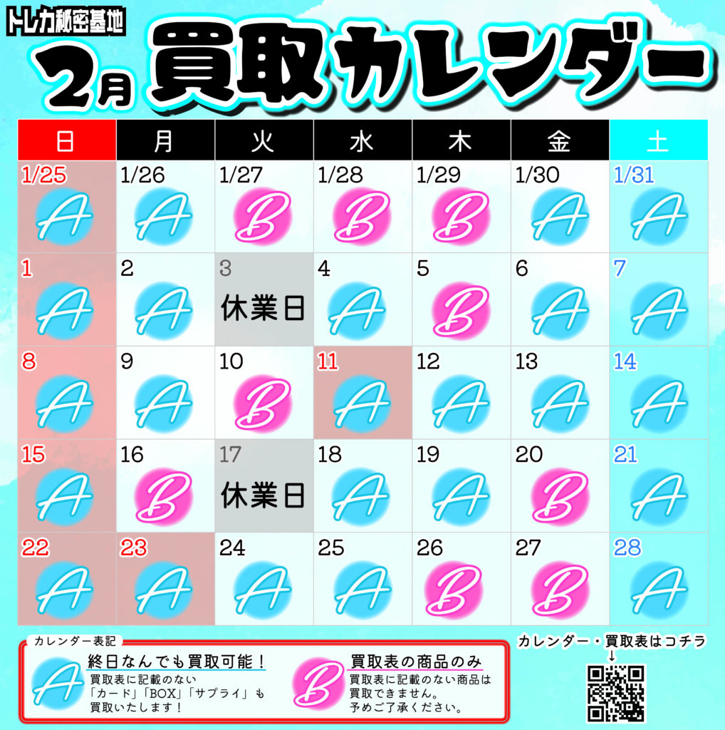 最新!買取情報 更新日 2026/2/8 ※終日買取可能日でも、当日の混雑状況により急遽買取停止となる場合や、査定担当の状況により急な予定変更がある可能性がございます。 ※在庫状況により予告なく買取額変更となる場合がございます。
